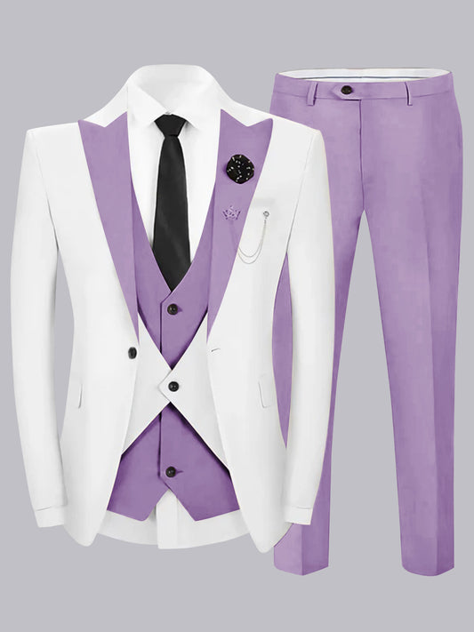 Modern Color Block Peak Lapel Men's 3 Pieces Suit For Groom Or Prom