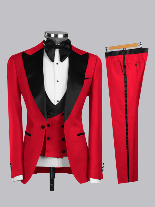 Contemporary Men's 3 Pieces Contrast Trim Peak Lapel Suit For Formal & Werdding
