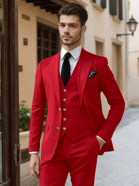 Elegant Peak Lapel Slim Fit Men's 3 Pieces Formal Suit For Wedding Party