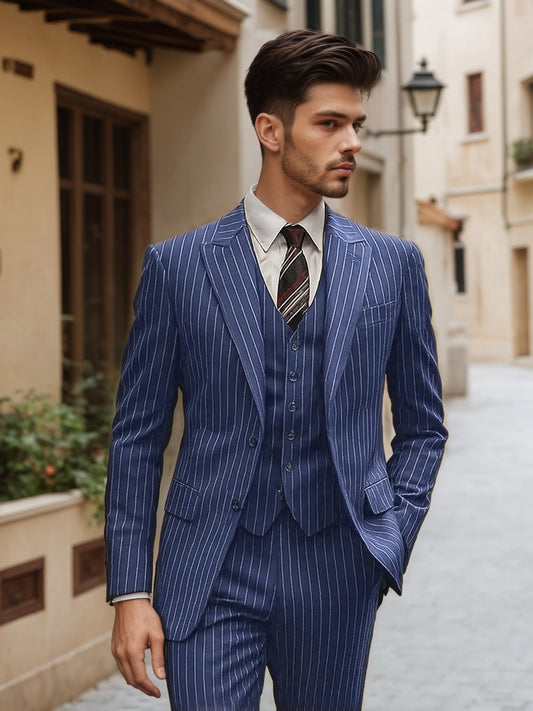 Classic Pinstripe Wide Peak Lapel Men's 3 Pieces Business Suit