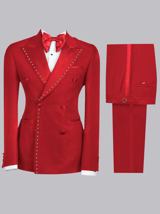 Slim Fit Men's 2 Pieces Peaked Lapel Rivet Suits for Wedding Party Prom