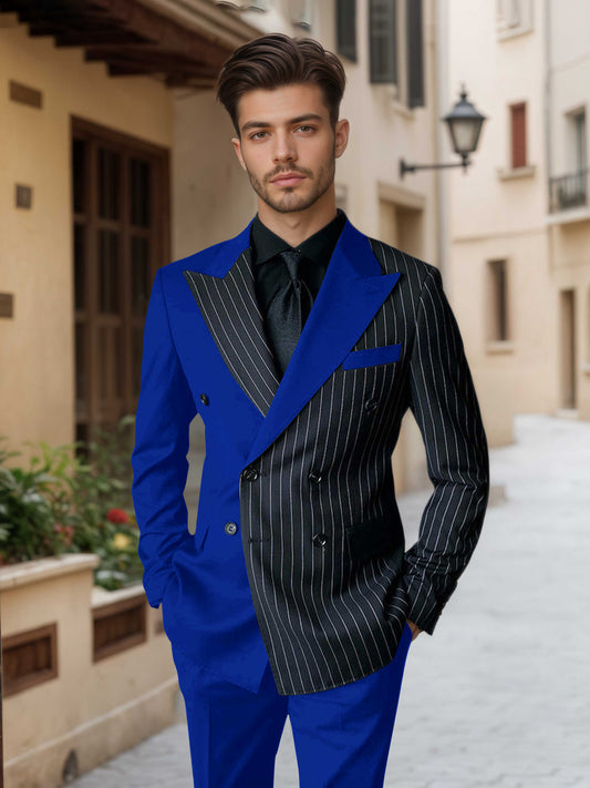 Unique Men's 2 Piece Suit Slim Fit Double Breasted Peak Lapel Patchwork For Party