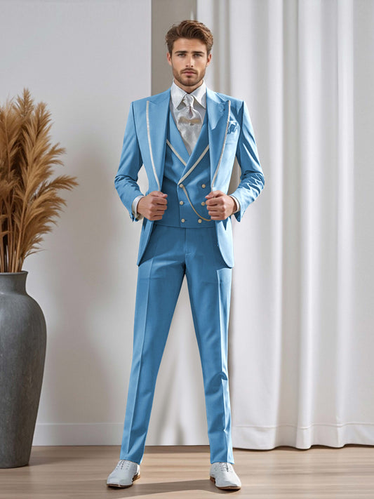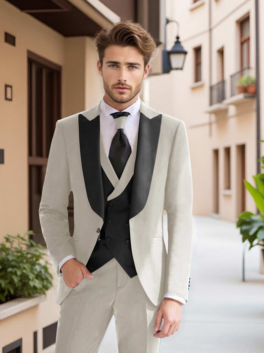Contemporary Men's 3 Pieces Contrast Trim Peak Lapel Suit For Formal & Werdding