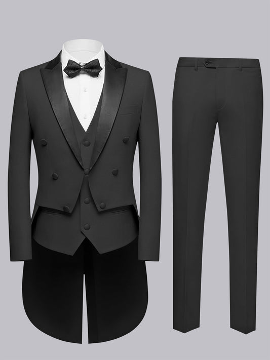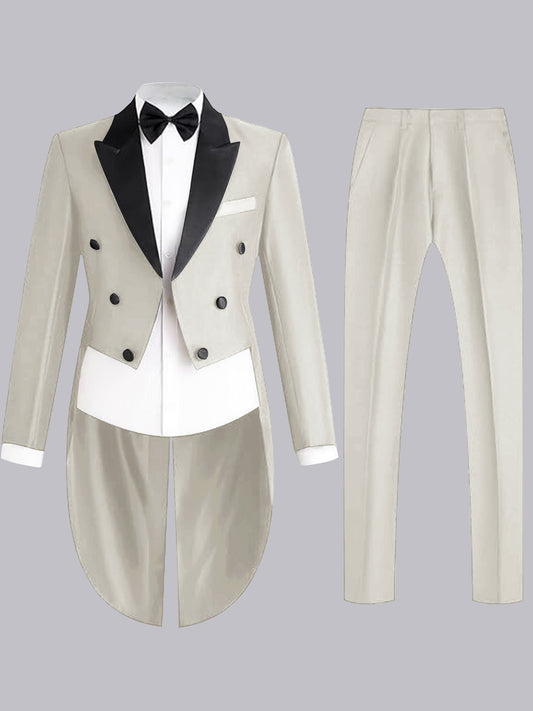 Classic Men's 3 Pieces Peak Lapel Contrast Trim Tailcoat Suit For Formal
