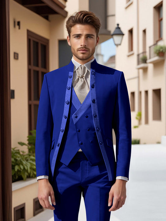 Romantic Stand Collar Double Breasted Men's 3 Pieces Formal Suit Wedding Day