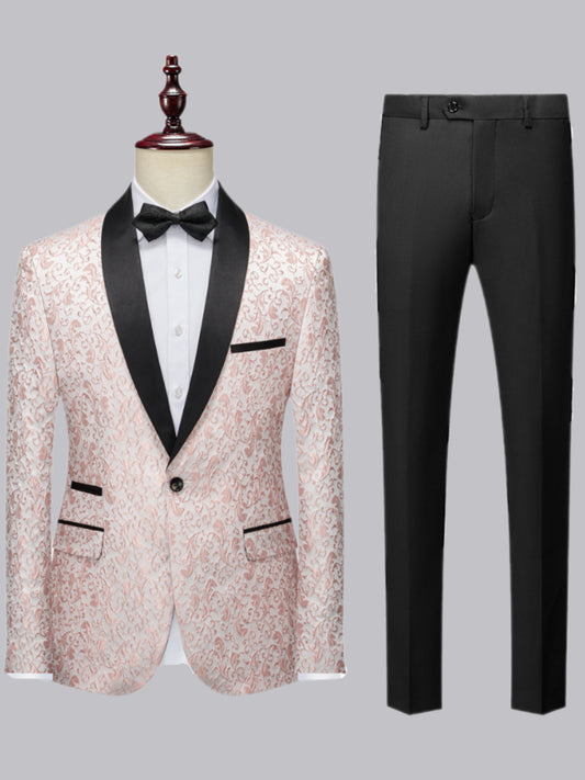 Graceful Single Breasted Shawl Lapel Jacquard Men's 2 Pieces Suit For Prom