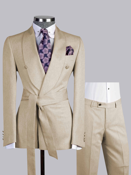 Smart Slim Fit Peak Lapel Men's 2 Pieces Belted Double Breasted Business Suits