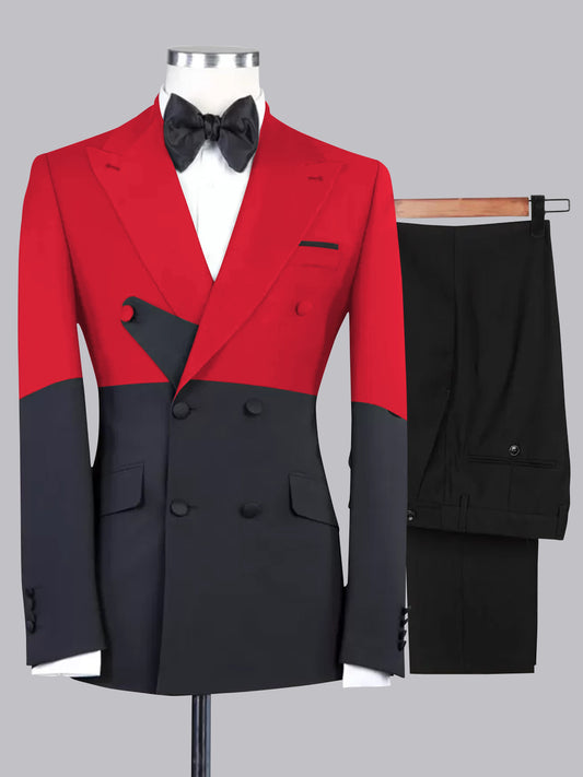 Unique Men's 2 Piece Suit Slim Fit Double Breasted Peak Lapel Patchwork For Party