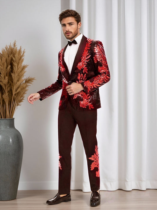 Dazzling Shawl Lapel Men's 2 Pieces Suit Sequin Appliques For Prom & Party
